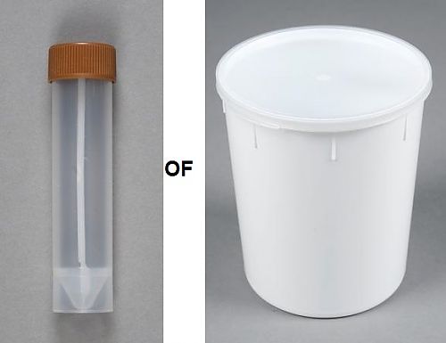 Een kleine hoeveelheid faeces (enkele lepeltjes) in een monsterpotje overbrengen.