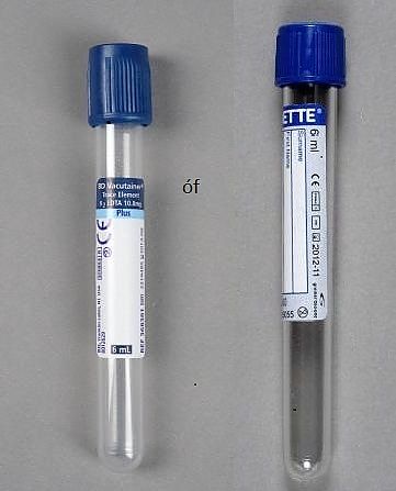 sporenementvrije EDTA-buis blauwe dop 6,0 ml óf sporenelementvrije heparinebuis blauwe dop zwarte rand 6,0 ml